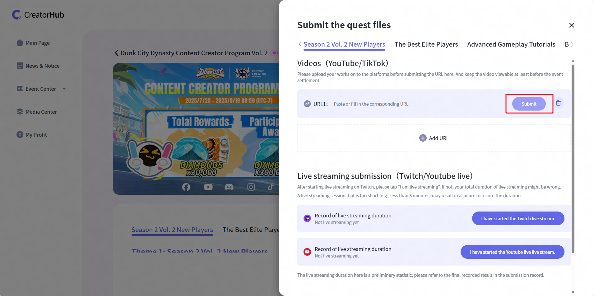 The Creator Hub is an official platform designed to connect content creators with amazing opportunities. By submitting video and livestream content, you can participate in various events and earn rewards, including cash prizes, in-game items, and exclusive merchandise.